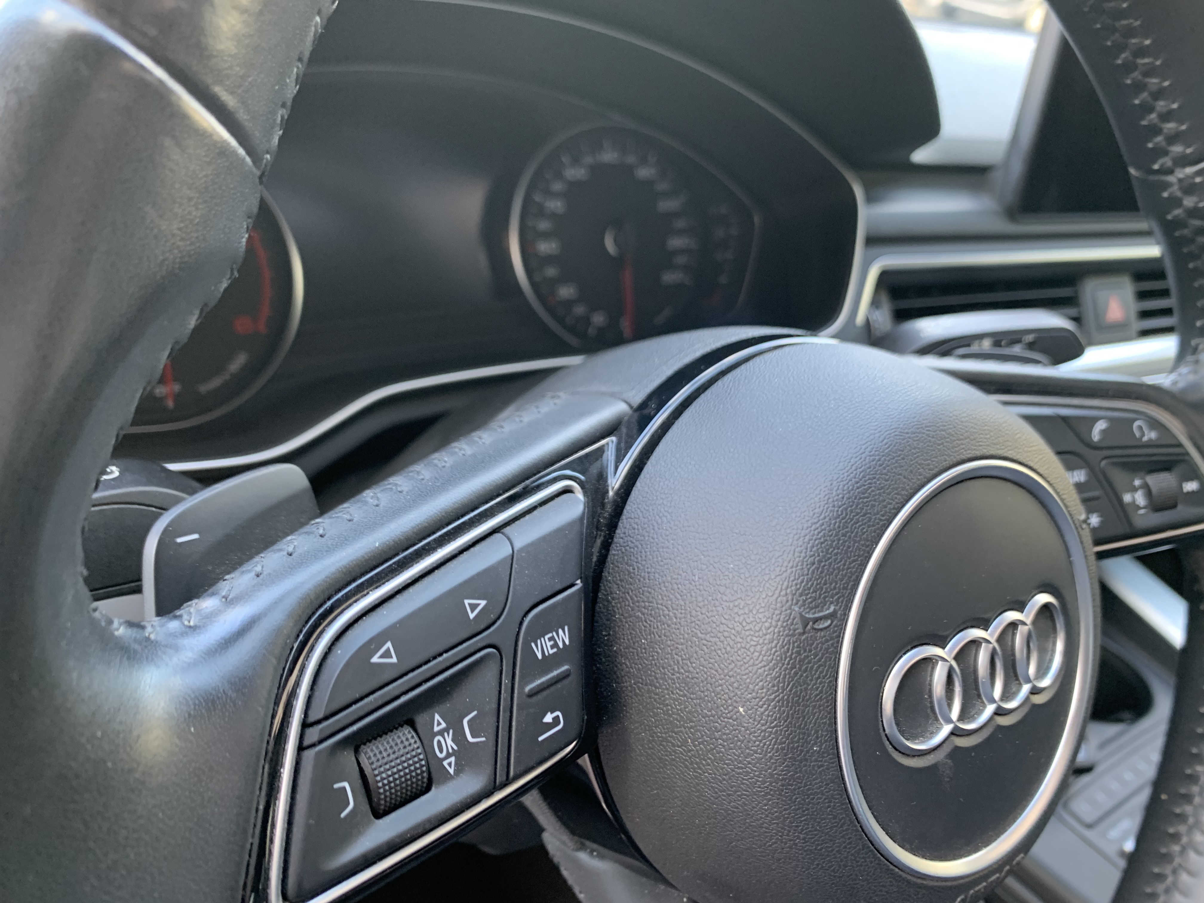 •Volante de cuero con levas.